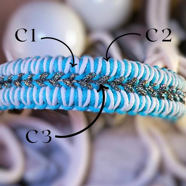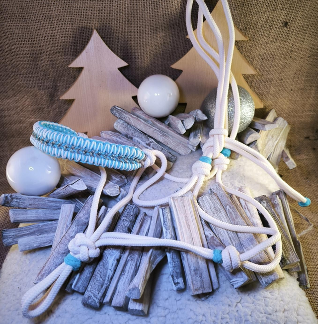 Sa muserolle large (3cm) mêle le blanc neige, le bleu intense et des touches argentées, comme des cristaux scintillants au soleil.