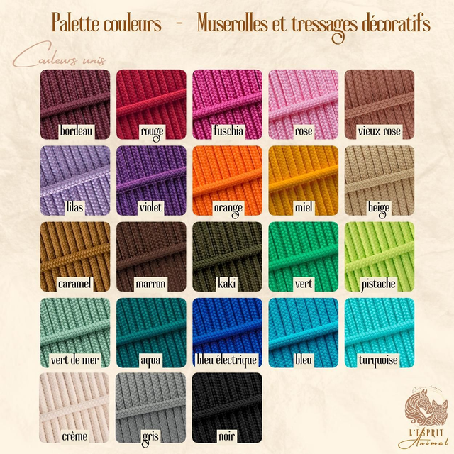 La corde blanche est ponctuée de rappels turquoise, créant une continuité douce et raffinée avec la muserolle.