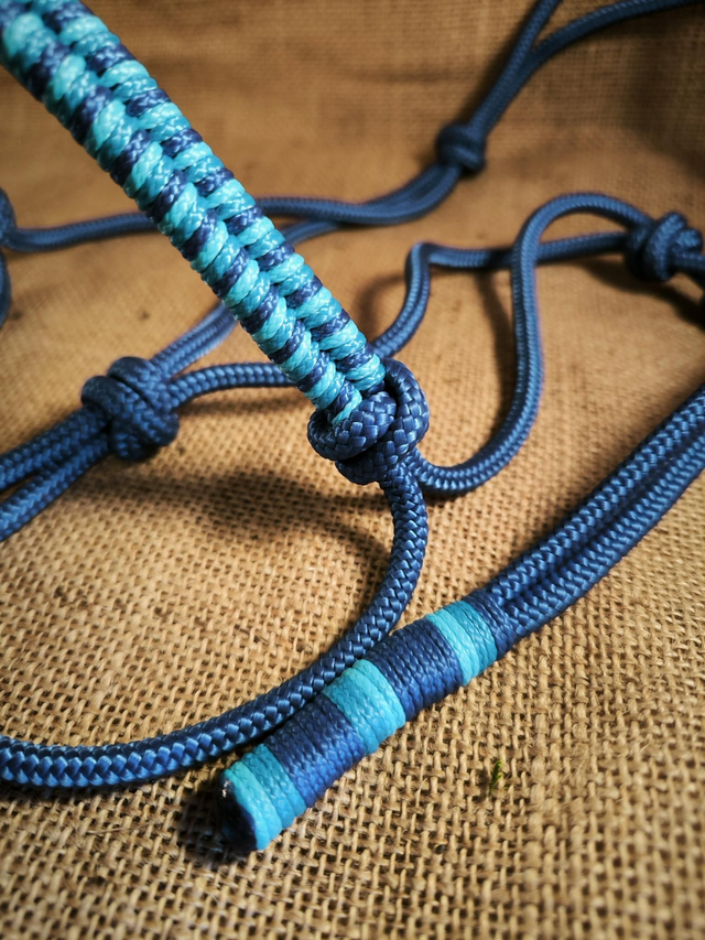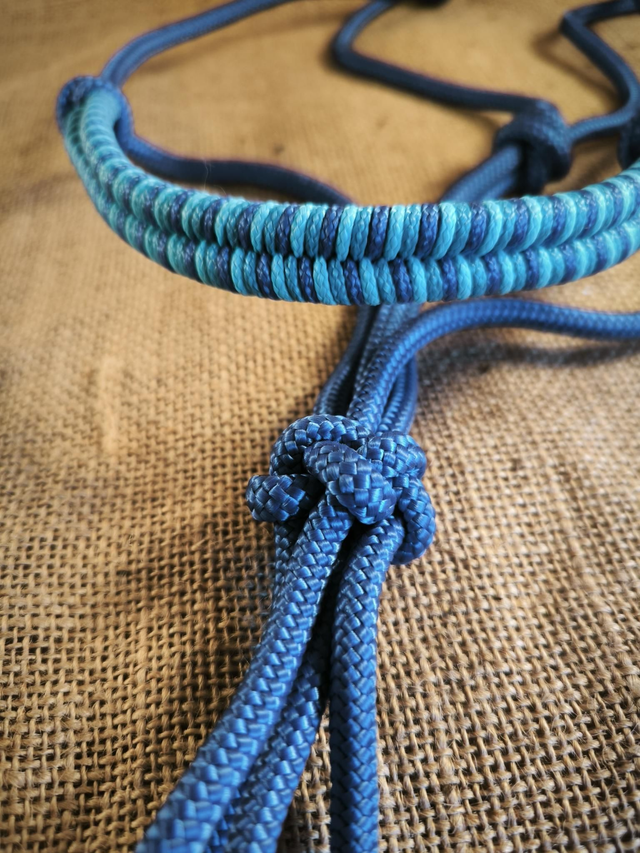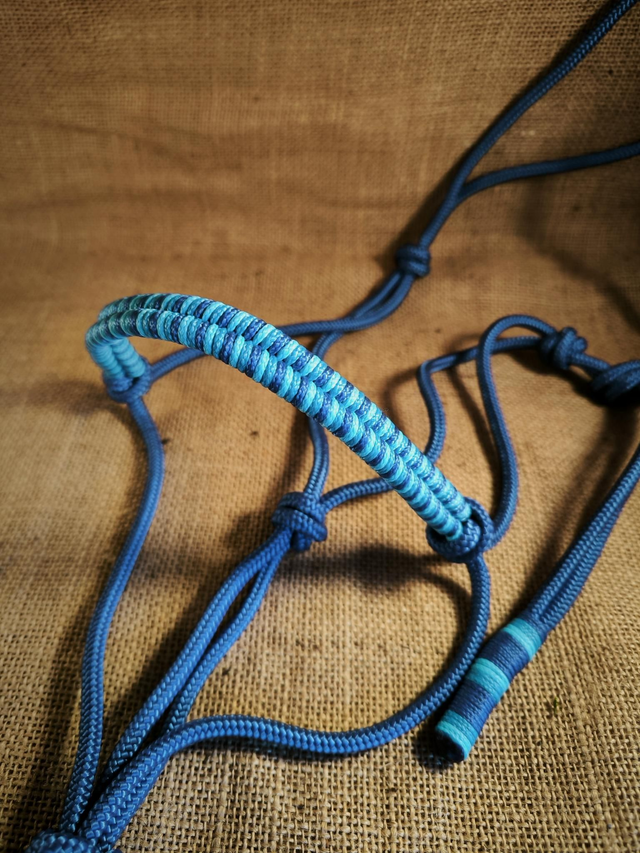 Ce licol joue les contrastes avec une base bleu profond et une muserolle tressée de nuances turquoise, bleu et bleu profond. Inspiré des teintes marines, il allie force et sérénité.