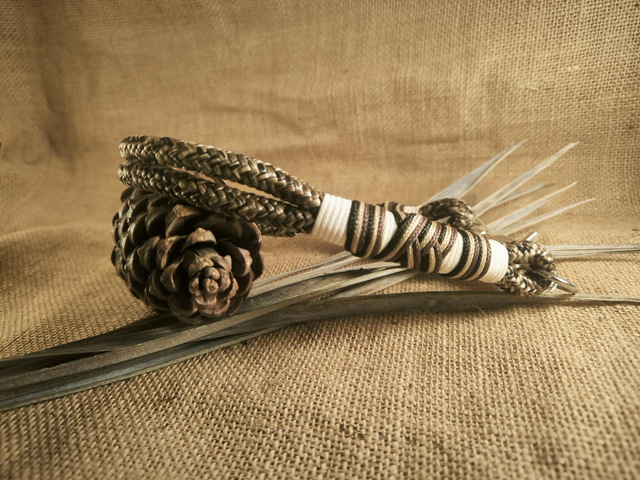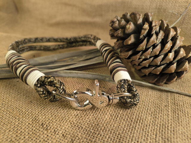 Ce collier associe des tons bruns, beiges et crème pour un look intemporel et chic.
